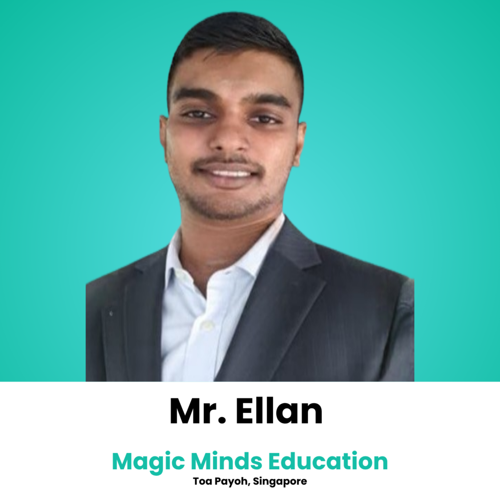 Mr. Ellan, a certified Tamil language teacher with 9 years of enriching experience in teaching Tamil for primary and secondary students, skillfully nurtures young minds at Magic Minds. He focuses on honing Standard and Higher Tamil skills to excel in scores based on the MOE syllabus, ensuring students achieve the best grades. Mr. Ellan’s expertise empowers students to unlock their potential in reading, speaking, and writing Tamil. With engaging lesson plans, innovative pedagogies, and deep empathy, he makes Tamil learning a vibrant and inclusive journey, catering to diverse learning styles. Firm yet approachable and compassionate in his teaching, Mr. Ellan creates inspiring, welcoming, and transformative classrooms where learning empowers students to unlock their full potential.