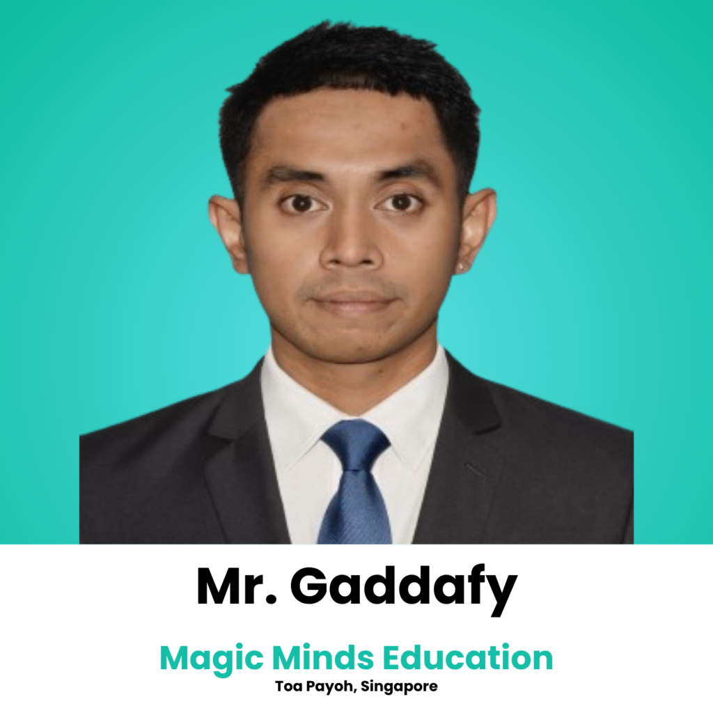 Mr. Gaddafy is an expert in training students to learn math concepts with understanding, particularly Upper Primary Math (to excel in PSLE) and Lower Secondary Math. He has a knack for making math accessible, focusing on building strong foundations so students grasp concepts with ease. Firm yet engaging, Mr. Gaddafy ensures every second counts in learning, guiding students to solve questions with confidence and comfort. As a football coach and sprinter during his spare time, he brings the same intensity and strategy to math coaching, applying his powerful 6E coaching style (Engage, Explain, Exit, Enter, Educate, Ensure) to turn math into a winning play. He empowers students to tackle Upper Primary and Lower Secondary Math challenges with agility, making learning impactful and results-oriented. With expertise spanning Upper Primary (PSLE) and Lower Secondary, Mr. Gaddafy coaches students to navigate MOE syllabus topics with proficiency. At Magic Minds, he shapes students to be math game-changers, blending agility of mind with the winning spirit of sports!
